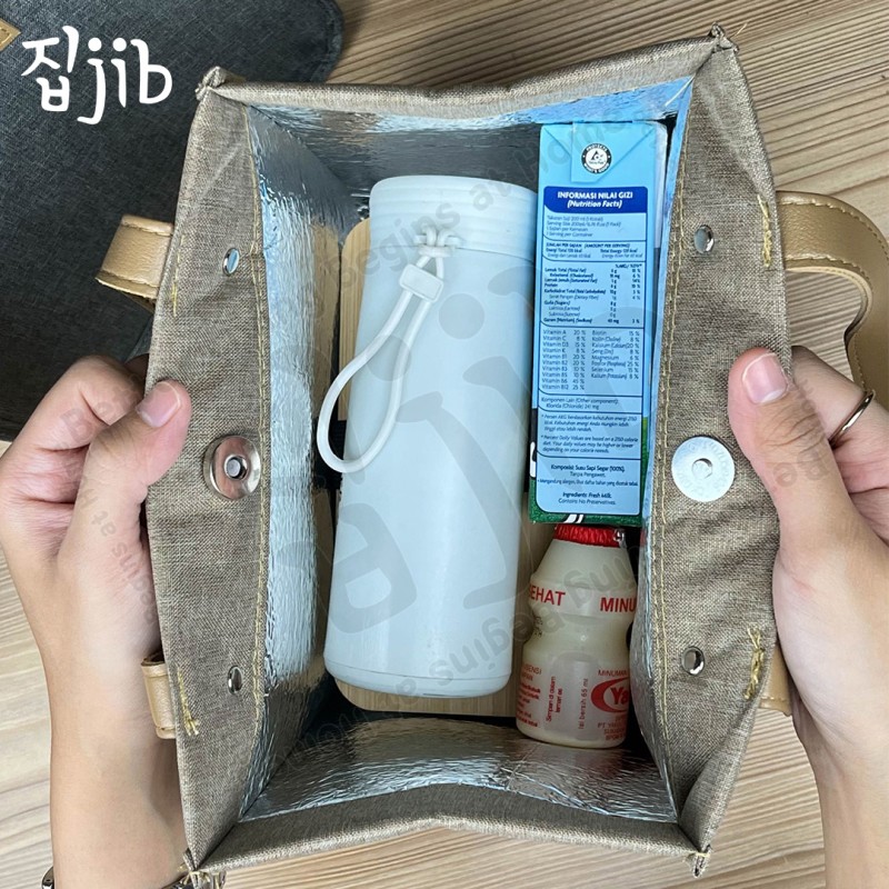 -. Tas bekal yang ringan dan portabel, berkapasitas besar cocok untuk membawa kotak makan siang, buah-buahan, minuman, makanan ringan, dsb