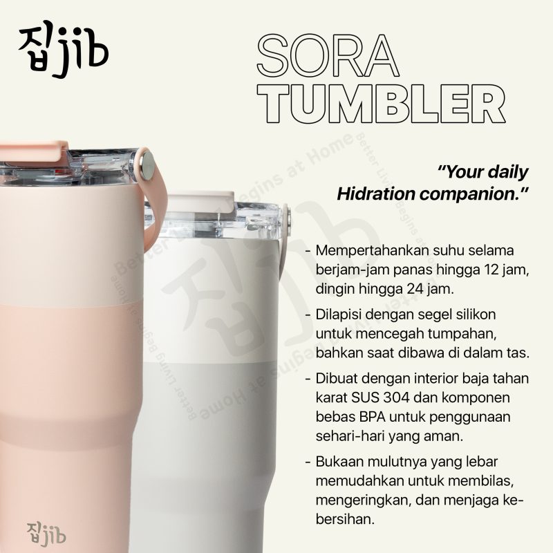 JIB Sora Tumbler memakai material 2 lapis (PP + Stainless Steel 304) yang kuat, aman, dan pastinya BPA Free. Kapasitas besar + desain stylish dengan 2 tone warna bikin kamu bisa tetap fresh seharian tanpa repot bolak-balik isi ulang.