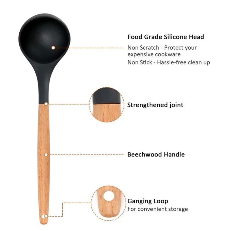 Terdiri dari 5 Utensil Silicone dengan berbagai kegunaan :